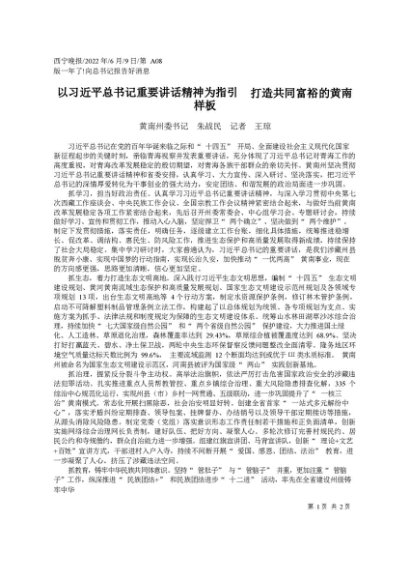 署名文章:2022.06.09黄南州委书记朱战民记者王琼:以习近平总书记重要讲话精神为指引打造共同富裕的黄南样板