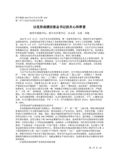 / 署名文章:2022.06.09海西州委副书记、格尔木市委书记汪山泉记者刘瑜:以优异成绩回报总书记的关心和厚爱