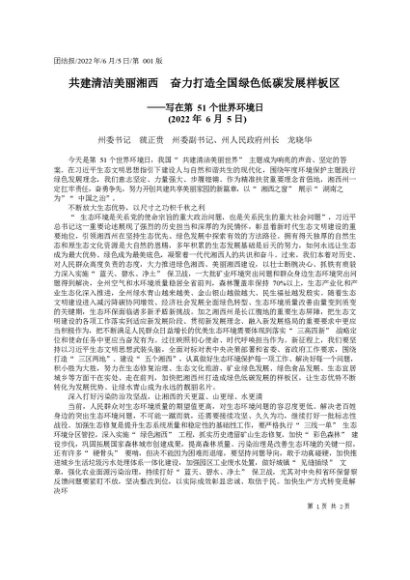署名文章:2022.06.05州委书记虢正贵州委副书记、州人民政府州长龙晓华:共建清洁美丽湘西奋力打造全国绿色低碳发展样板区