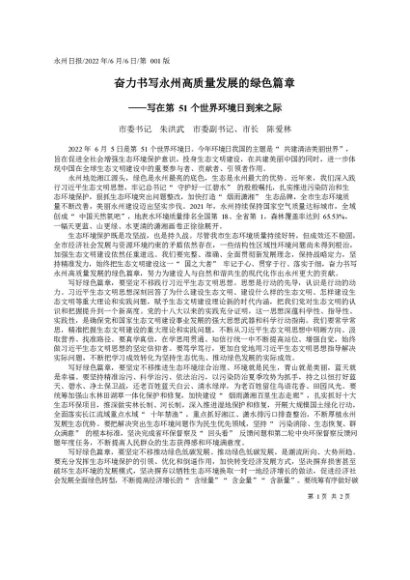 署名文章:2022.06.06市委书记朱洪武市委副书记、市长陈爱林:奋力书写永州高质量发展的绿色篇章