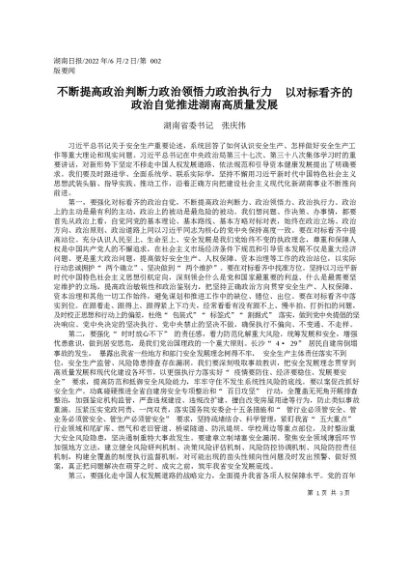 署名文章:2022.06.02湖南省委书记张庆伟:不断提高政治判断力政治领悟力政治执行力以对标看齐的政治自觉推进湖南高质量发展