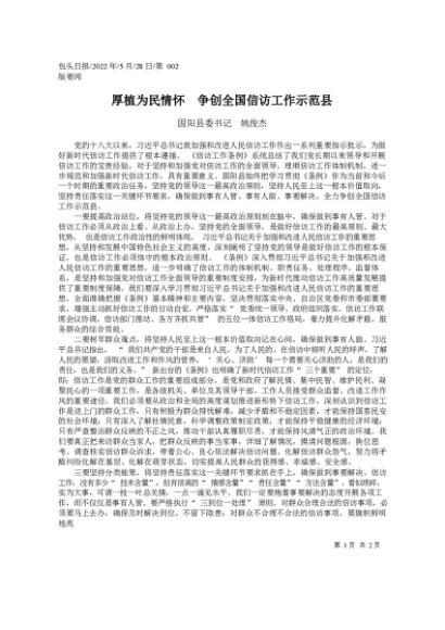 署名文章:2022.05.28固阳县委书记姚俊杰:厚植为民情怀争创全国信访工作示范县