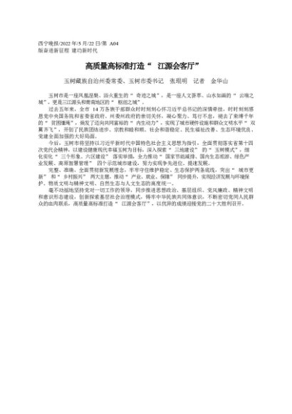 署名文章:2022.05.22玉树藏族自治州委常委、玉树市委书记张琨明记者金华山:高质量高标准打造江源会客厅