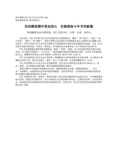 / 署名文章:2022.05.22黄南藏族自治州委常委、同仁市委书记旦增记者金华山:在回顾成绩中坚定信心在接续奋斗中书写新篇