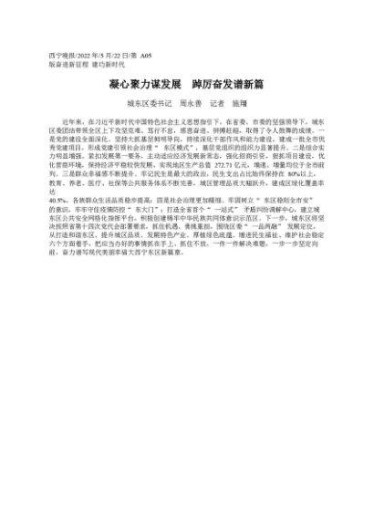 / 署名文章:2022.05.22城东区委书记周永善记者施翔:凝心聚力谋发展踔厉奋发谱新篇