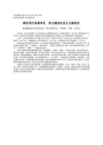 署名文章:2022.05.22果洛藏族自治州委常委、玛沁县委书记牛得海记者金华山:踔厉笃行奋勇争先努力建设社会主义新牧区