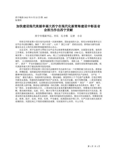 署名文章:2022.05.22市长:加快建设现代美丽幸福大西宁在现代化新青海建设中彰显省会担当作出西宁贡献