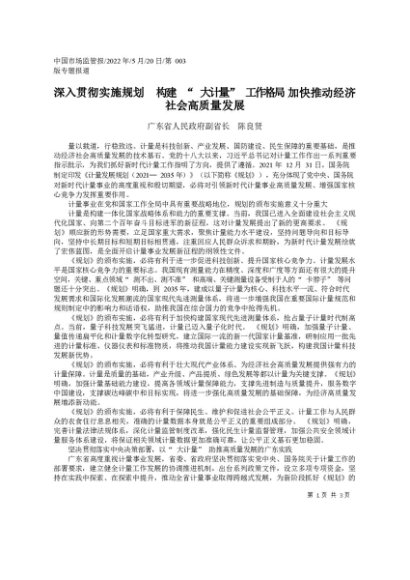 署名文章:2022.05.20副省长陈良贤:深入贯彻实施规划构建大计量工作格局加快推动经济社会高质量发展