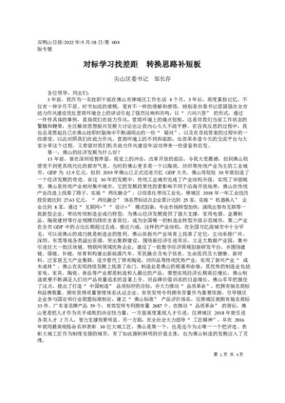 / 署名文章:2022.05.18尖山区委书记邹长存:对标学习找差距转换思路补短板