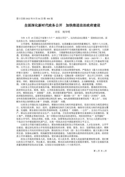 / 署名文章:2022.05.16市长姚华明:全面深化新时代政务公开加快推进法治政府建设