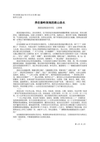 署名文章:2022.05.13陕西省商洛市市长王青峰:养在秦岭深闺的商山洛水