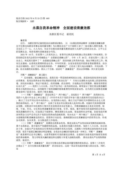 署名文章:2022.04.23尧都区委书记崔绍民:永葆自我革命精神全面建设清廉尧都