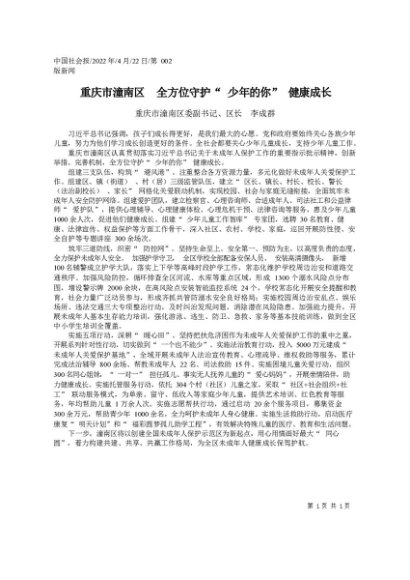 / 署名文章:2022.04.22重庆市潼南区委副书记、区长李成群:重庆市潼南区全方位守护少年的你健康成长