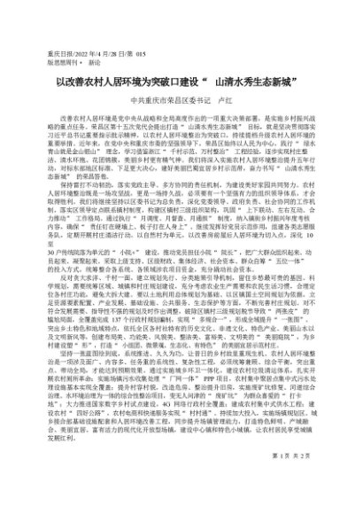 / 署名文章:2022.04.28中共重庆市荣昌区委书记卢红:以改善农村人居环境为突破口建设山清水秀生态新城