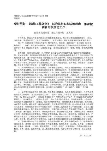 署名文章:2022.04.30自治区党委常委、通辽市委书记孟宪东:学好用好《信访工作条例》以为民初心和法治理念推深做实新时代信访工作