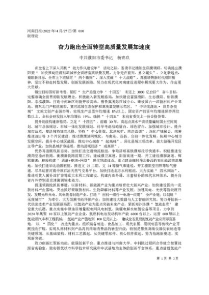 署名文章:2022.04.27中共濮阳市委书记杨青玖:奋力跑出全面转型高质量发展加速度