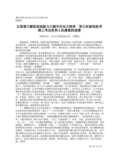 署名文章:2022.04.11市委书记李锡文:以思想大解放促进能力大提升作风大转变努力在新的赶考路上考出党和人民满意的成绩