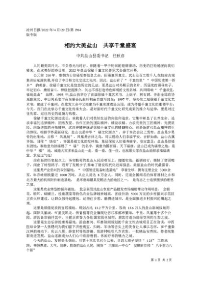 署名文章:2022.04.29中共盐山县委书记任秋彦:相约大美盐山共享千童盛宴