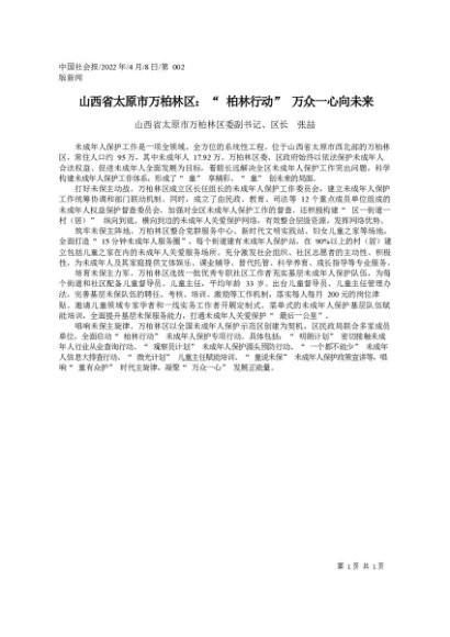 / 署名文章:2022.04.08区长张喆:山西省太原市万柏林区:柏林行动万众一心向未来