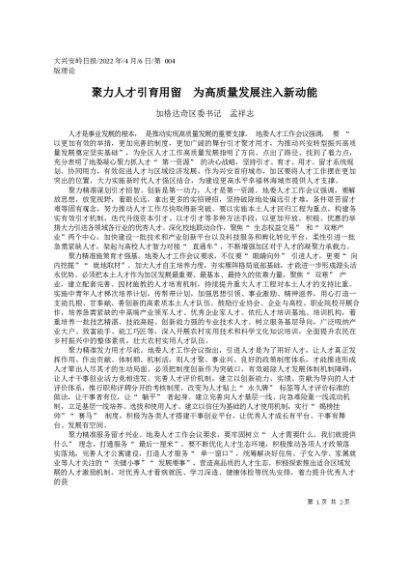 / 署名文章:2022.04.06加格达奇区委书记孟祥志:聚力人才引育用留为高质量发展注入新动能