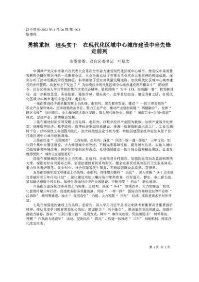 署名文章:2022.03.26市委常委、汉台区委书记叶稳太:勇挑重担埋头实干在现代化区域中心城市建设中当先锋走前列