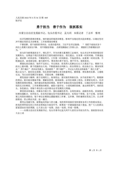 / 署名文章:2022.03.31内蒙古自治区党委副书记、包头市委书记孟凡利本报记者丁志军:勇于担当善于作为狠抓落实