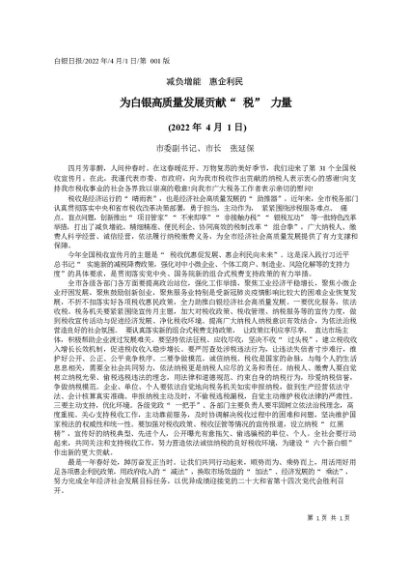 署名文章:2022.04.01市委副书记、市长张延保:为白银高质量发展贡献税力量