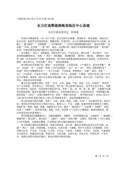 署名文章:2022.03.25中共竹溪县委书记柯尊勇:全力打造鄂渝陕毗邻地区中心县城