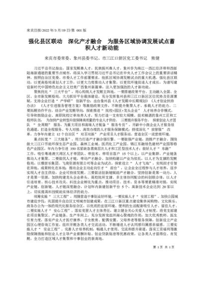 / 署名文章:2022.03.19市三江口新区党工委书记熊健:强化县区联动深化产才融合为服务区域协调发展试点蓄积人才新动能