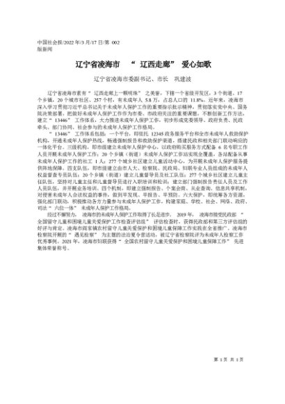 / 署名文章:2022.03.17辽宁省凌海市委副书记、市长巩建波:辽宁省凌海市辽西走廊爱心如歌