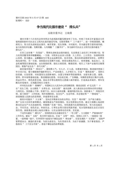 署名文章:2022.03.17乐陵市委书记王晓勇:争当现代化强市建设排头兵
