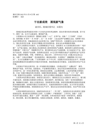 署名文章:2022.03.09副市长、陵城区委书记田晨光:干出新成效展现新气象