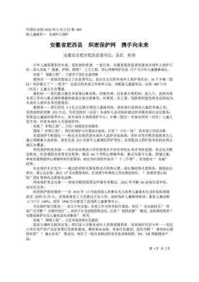 / 署名文章:2022.03.02安徽省合肥市肥西县委书记、县长陈伟:安徽省肥西县织密保护网携手向未来