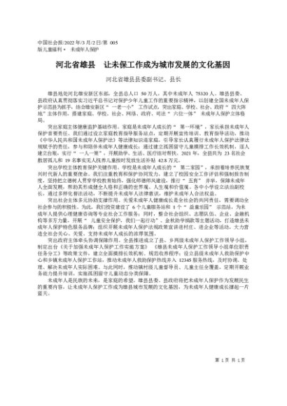 / 署名文章:2022.03.02县长付红瑜:河北省雄县让未保工作成为城市发展的文化基因