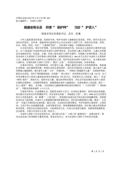 / 署名文章:2022.03.02福建省将乐县委副书记、县长陈羲:福建省将乐县织密保护网当好护苗人