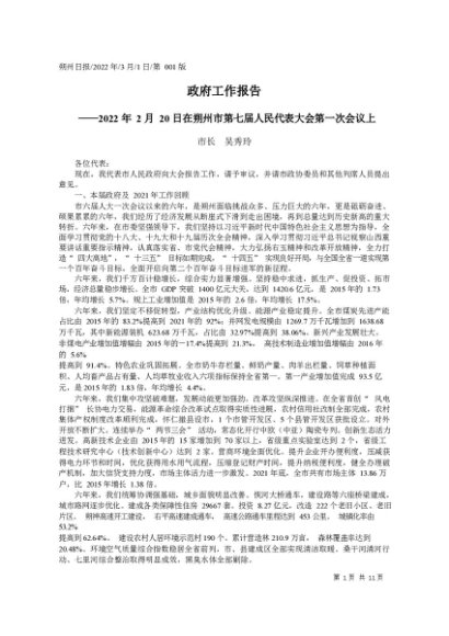 署名文章:2022.03.01市长吴秀玲:政府工作报告