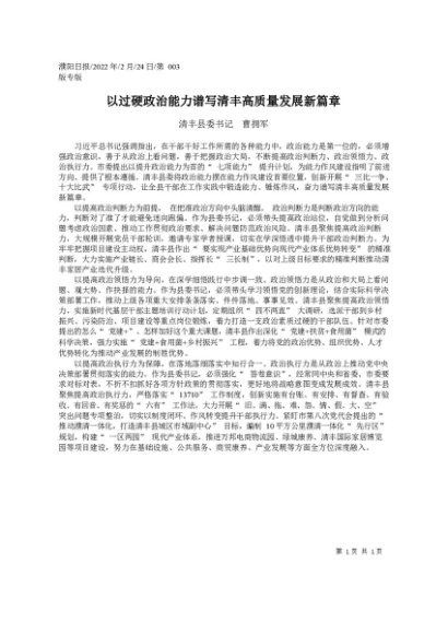 署名文章:2022.02.24清丰县委书记曹拥军:以过硬政治能力谱写清丰高质量发展新篇章