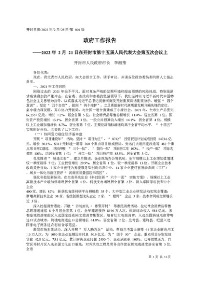 / 署名文章:2022.02.25开封市人民政府市长李湘豫:政府工作报告