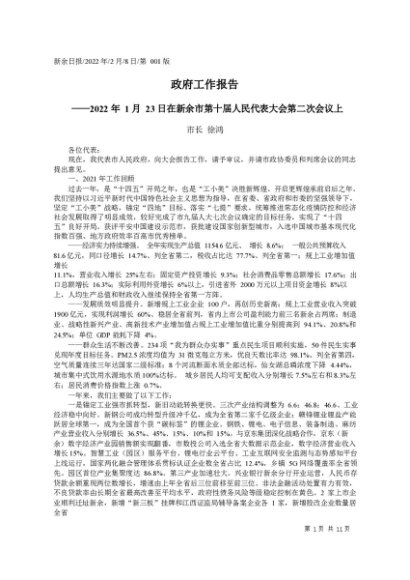 署名文章:2022.02.09代市长沈宏宇:政府工作报告