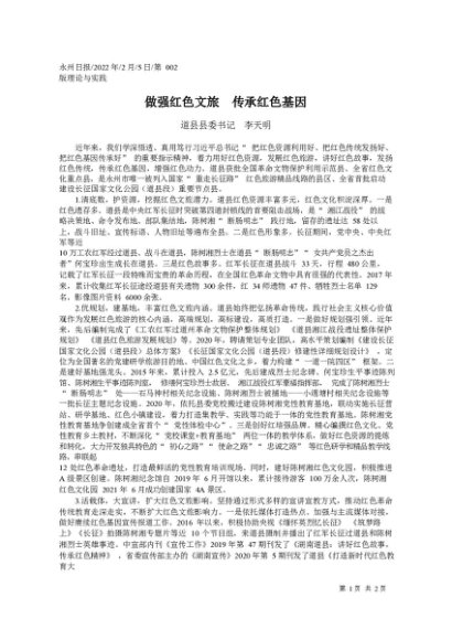 署名文章:2022.02.05道县县委书记李天明:做强红色文旅传承红色基因