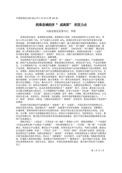 署名文章:2022.02.10河南省鹿邑县委书记李刚:找准县域经济成高原的发力点