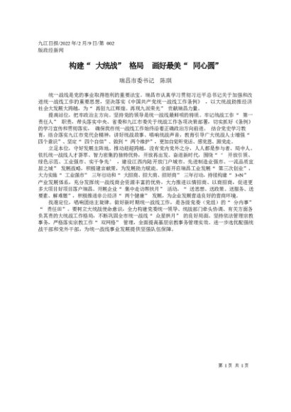 / 署名文章:2022.02.09瑞昌市委书记陈琪:构建大统战格局画好最美同心圆