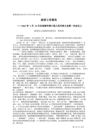 署名文章:2022.02.09曲靖市人民政府代理市长李先祥:政府工作报告
