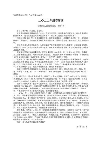 署名文章:2022.02.01宝鸡市人民政府市长杨广亭:二〇二二年新春贺词