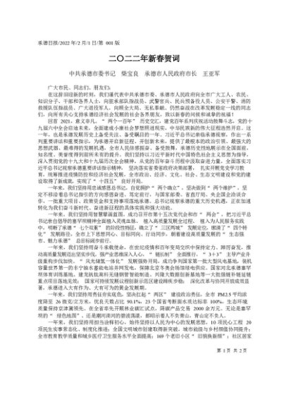 / 署名文章:2022.02.01中共承德市委书记柴宝良承德市人民政府市长王亚军:二〇二二年新春贺词