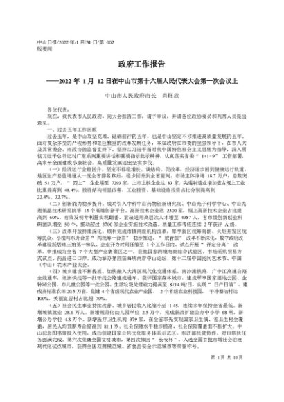 / 署名文章:2022.01.31中山市人民政府市长肖展欣:政府工作报告