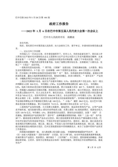 / 署名文章:2022.01.28巴中市人民政府市长高鹏凌:政府工作报告