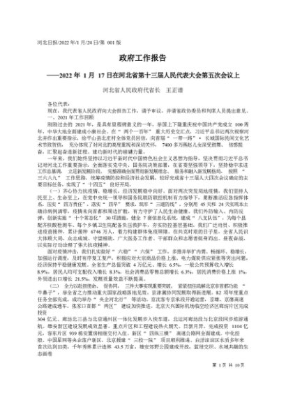 / 署名文章:2022.01.24河北省人民政府代省长王正谱:政府工作报告