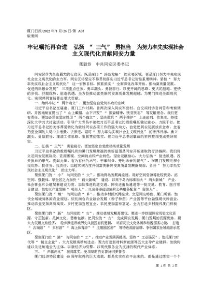 署名文章:2022.01.26张毅恭中共同安区委书记:牢记嘱托再奋进弘扬三气勇担当为努力率先实现社会主义现代化贡献同安力量