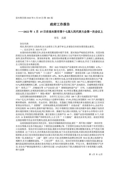 / 署名文章:2022.01.19市长丛丽:政府工作报告